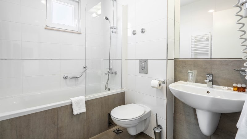 • Fräscha badrum med dusch, badkar, wc och hårfön